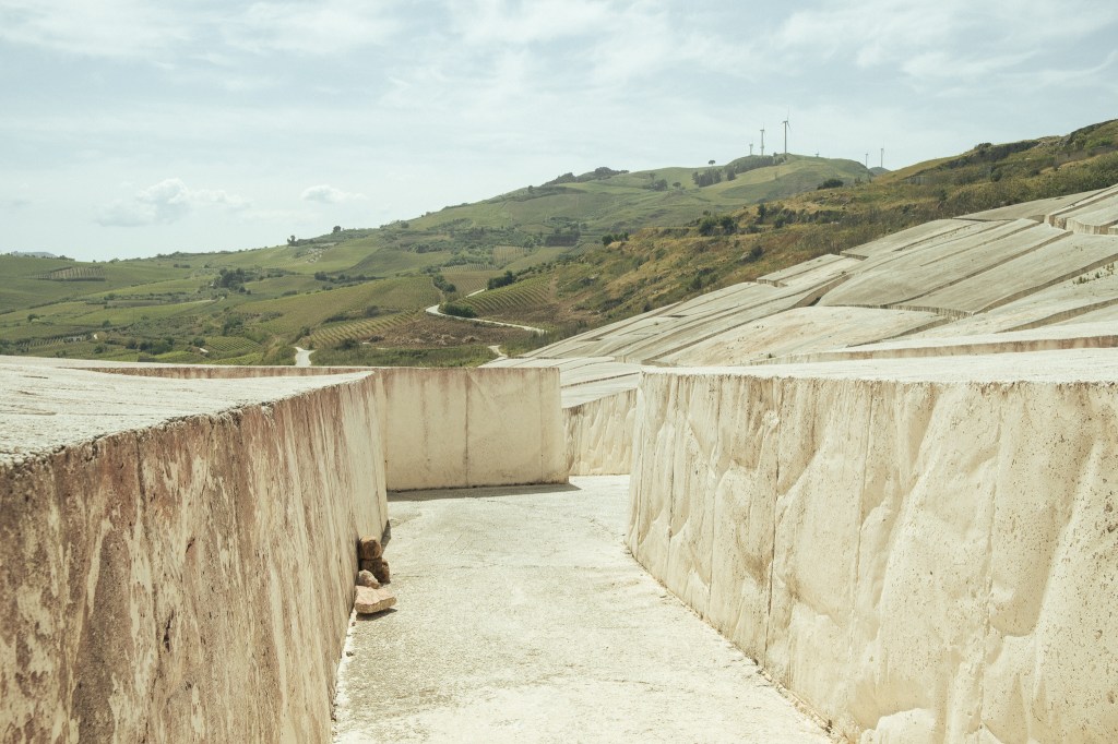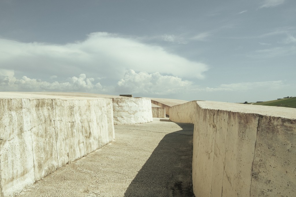 Under the dazzling Sicilian sun, Burri’s Grande Cretto stretches out like a concrete shroud. It is not just a work of art: it is a mineral silence that has sealed the cry of old Gibellina forever. Walking among its cracks, which faithfully trace the roads buried by the 1968 earthquake, means descending into the exposed veins of a petrified memory. Here, Land Art abandons the aesthetic challenge to become landscape surgery. Burri did not use the earth as a canvas, but as a wounded organism to be plastered. If American Land Art sought the sublime in empty spaces, here art is “history-specific”: a white scar that transforms pain into rock to save it from oblivion. Each block is a volume of interrupted stories, a library of absences that white, the colour of mourning without tears, protects from the erosion of time. The Cretto does not look to the stars; it keeps its gaze fixed on the ground, holding ghosts within its folds. It is the fingerprint of a weary giant, an act of resistance where concrete, covered in dust, breathes alongside wild thistles. Leaving this labyrinth, one is left with the weight of a farewell that art has made eternal, preventing nature from reabsorbing a loss too vast to be forgotten.